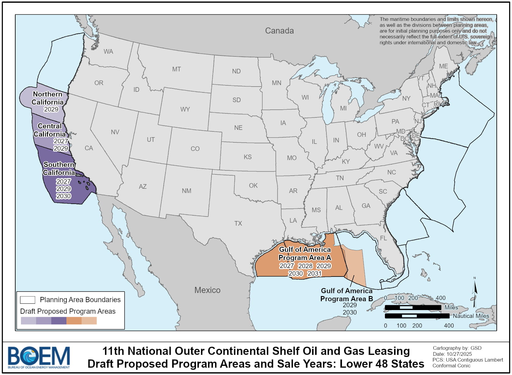 Before the program and individual lease sales are finalized, the public will have multiple opportunities to provide input. The Department says that it is encouraging “broad participation” in the upcoming 60-day public comment period, which will begin when the proposal is published in the Federal Register on November 24, 2025.